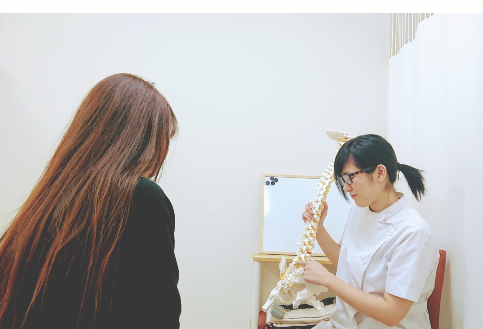 初めてのご来店の方には、問診票の記入をお願いしてます。問診票の内容をもとに現在の症状について詳しくお話を伺います。※お悩みの症状以外でも気になるところがございましたら、遠慮なくお伝えください。